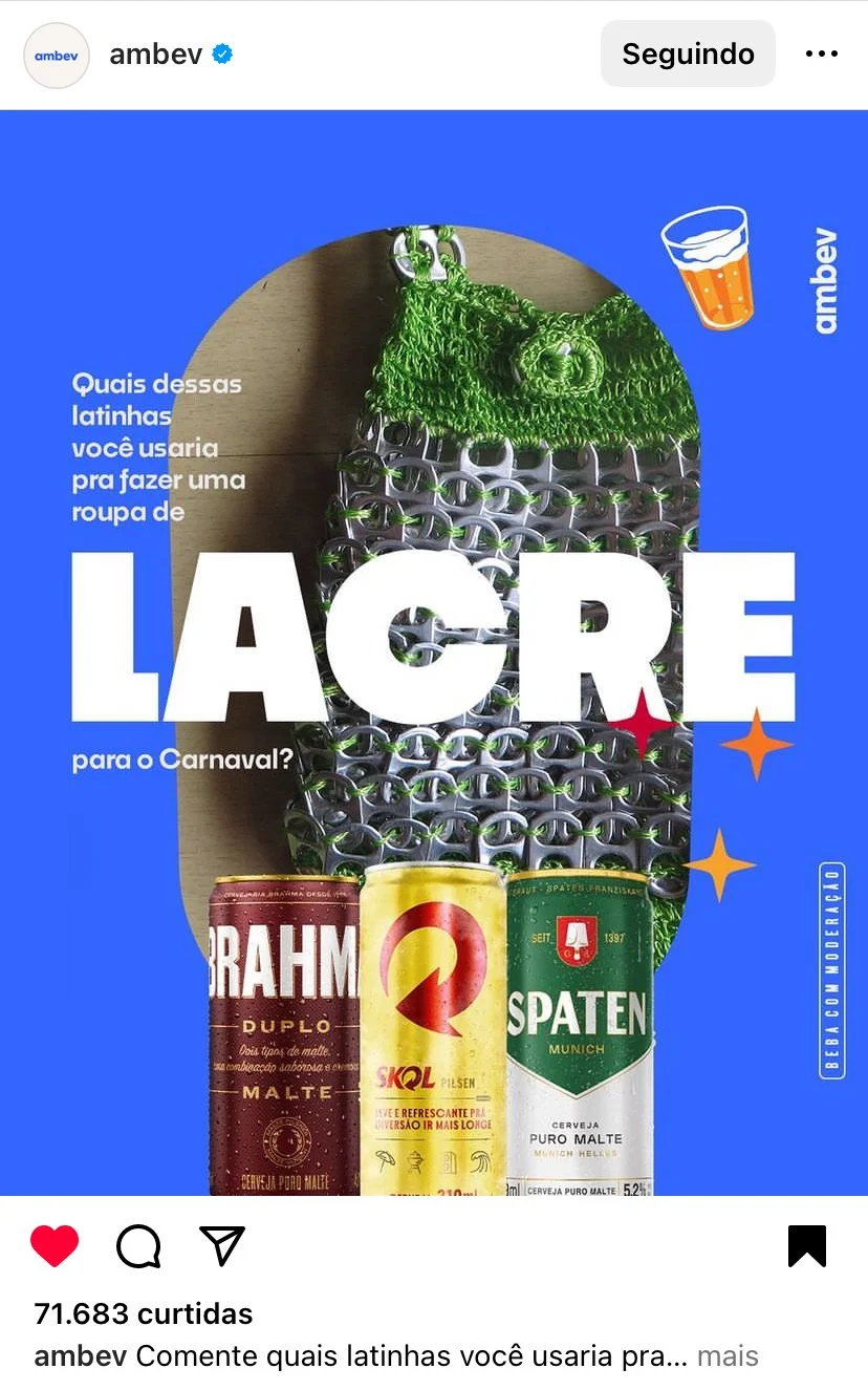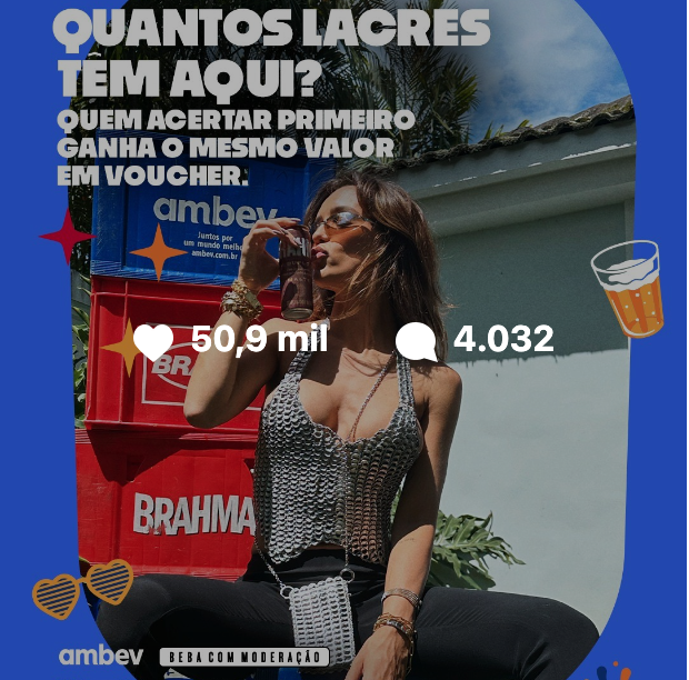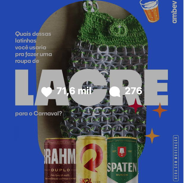 Então, convidamos Rafa para homenagear os catadores parceiros da Ambev e incentivar a reciclagem. Criamos um look de lacre. Resultado? Superamos a meta e a Rafa gostou tanto que não quis devolver o look.