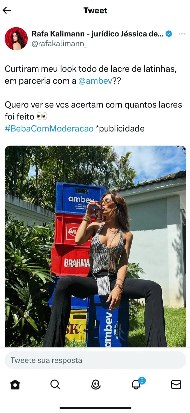 Rafa postou o top e desafiou o público a acertar com quantos lacres se faz um look.